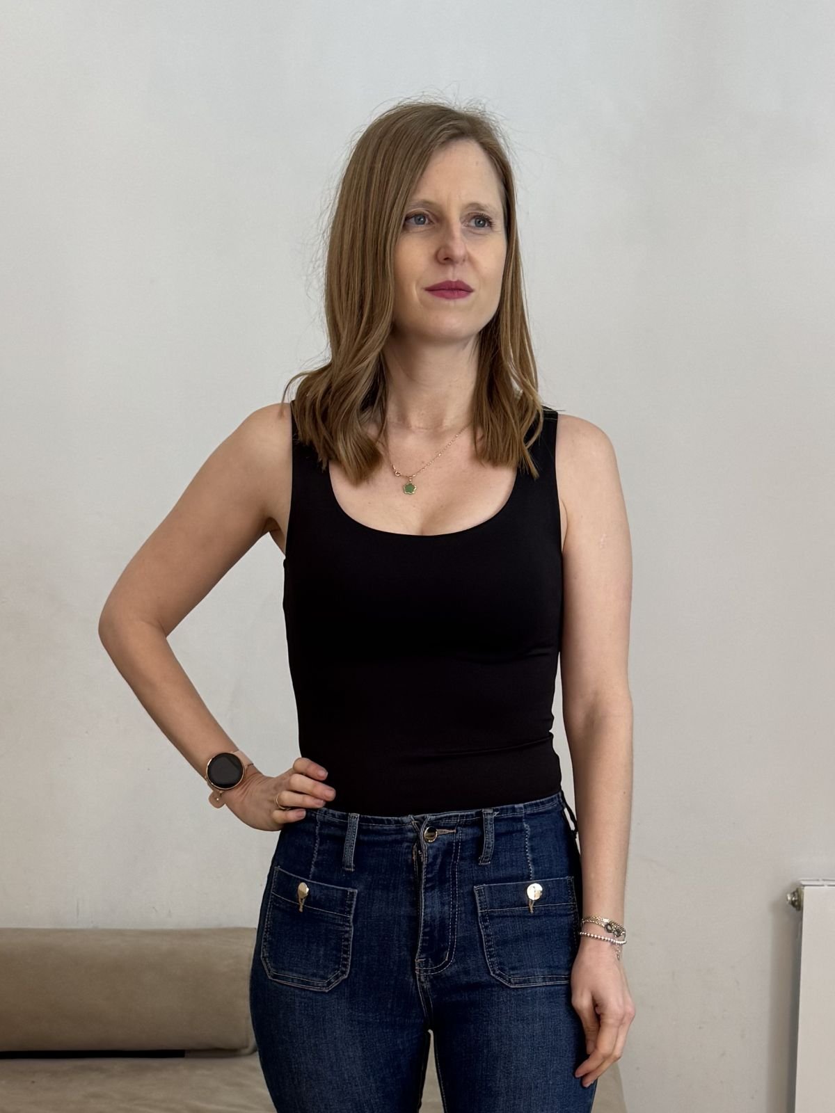 Top de cuello redondo y sisa amplia confeccionado en tejido de punto con acabado en rib. Corte recto y ajustado con bajo sencillo. Un básico versátil diseñado para ofrecer comodidad y adaptabilidad.